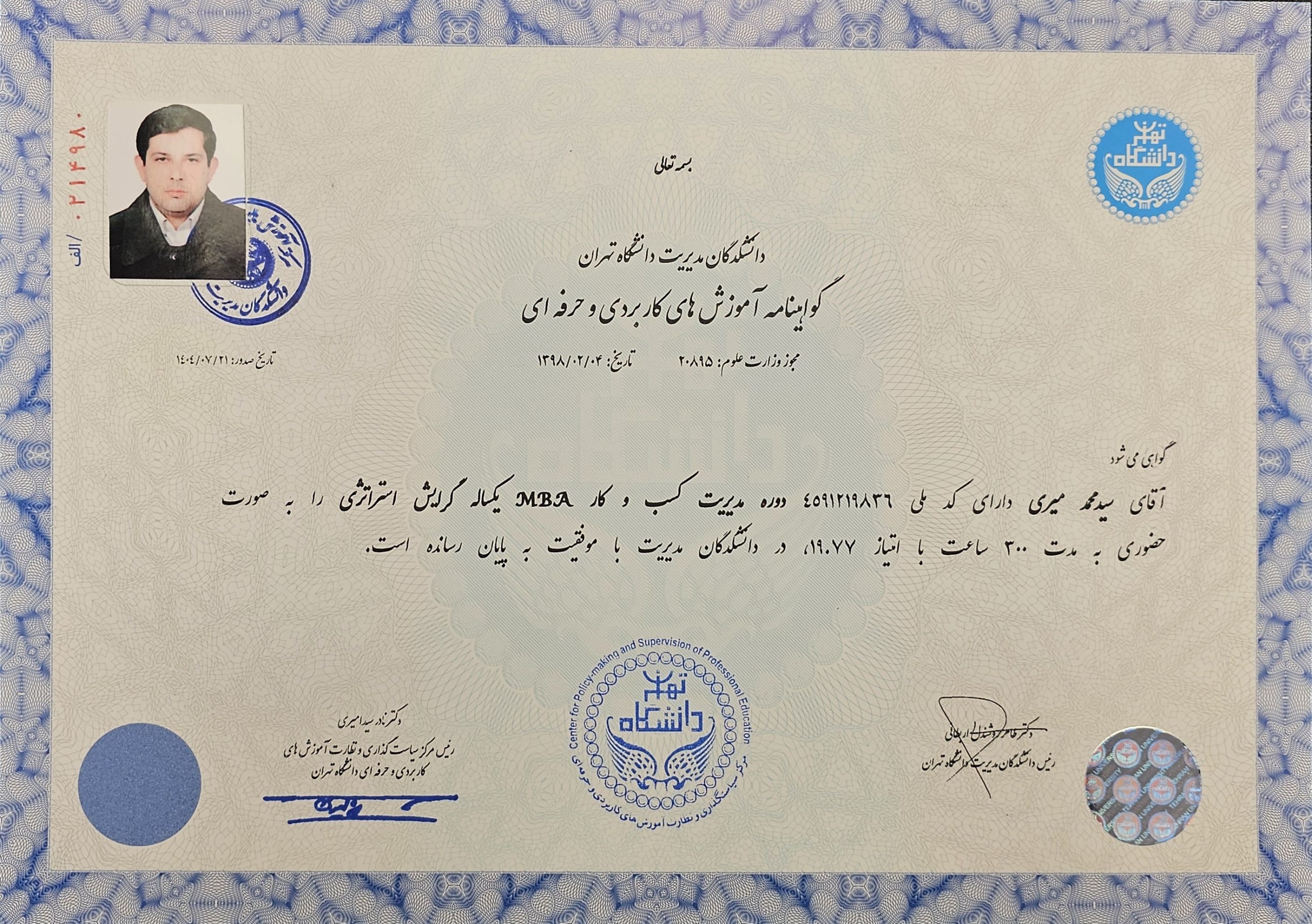 اهم دوره های آموزشی گذرانده شده با اخذ مدرک
